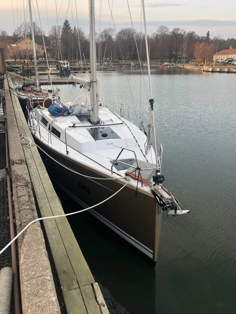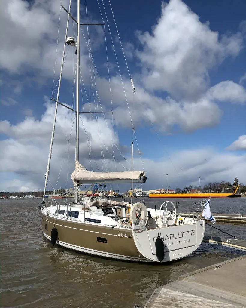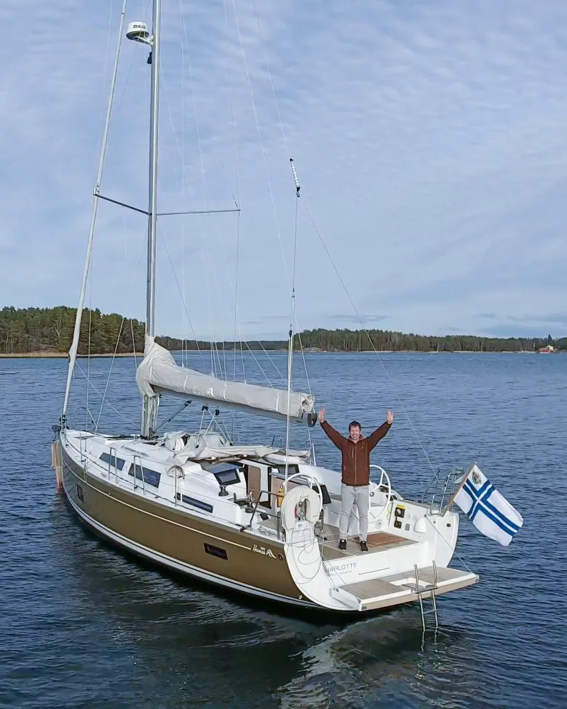 It felt really nice to see her there in the harbor, though. Our golden boat with the blue and white Finnish flag at the stern.